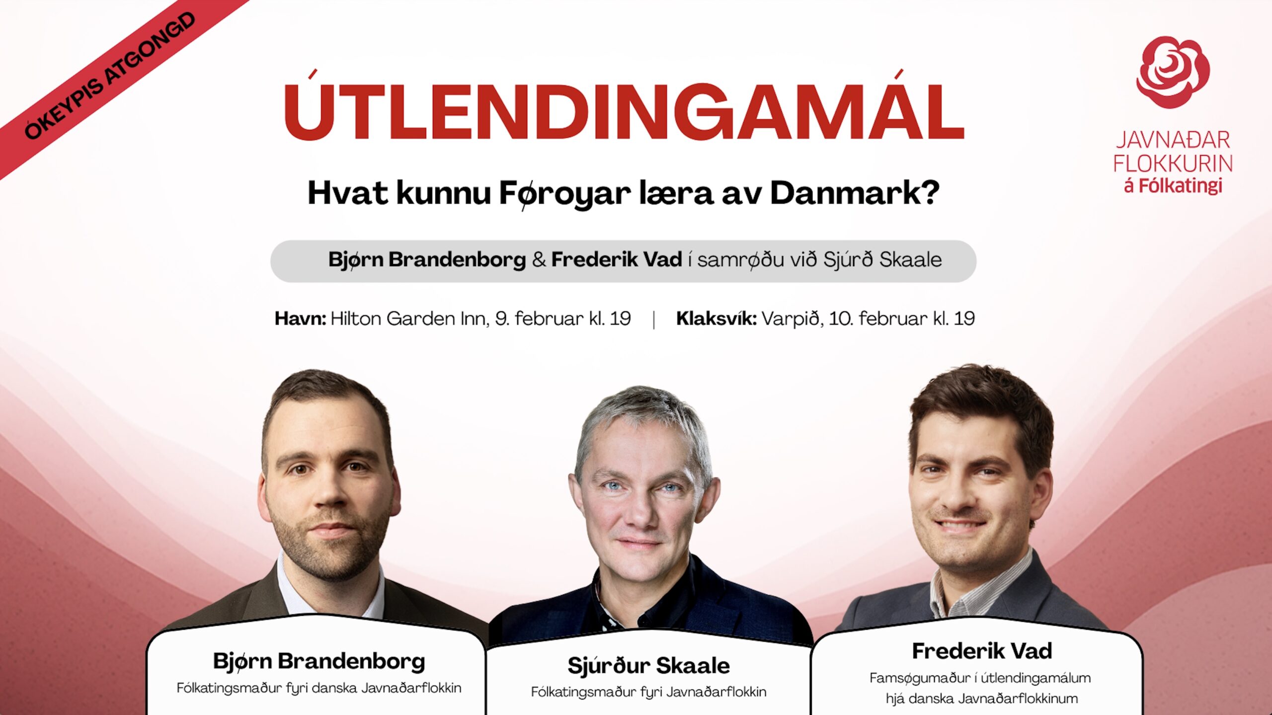 Hvussu kann eitt demokratiskt, opið samfelag verja seg sjálvt, sín samleika og síni virði í eini tíð við nógvari tilflyting. Hetta tosa Frederik Vad, Bjørn Brandenborg og Sjúrður Skaale um týskvøldið 10. februar í Varpinum.